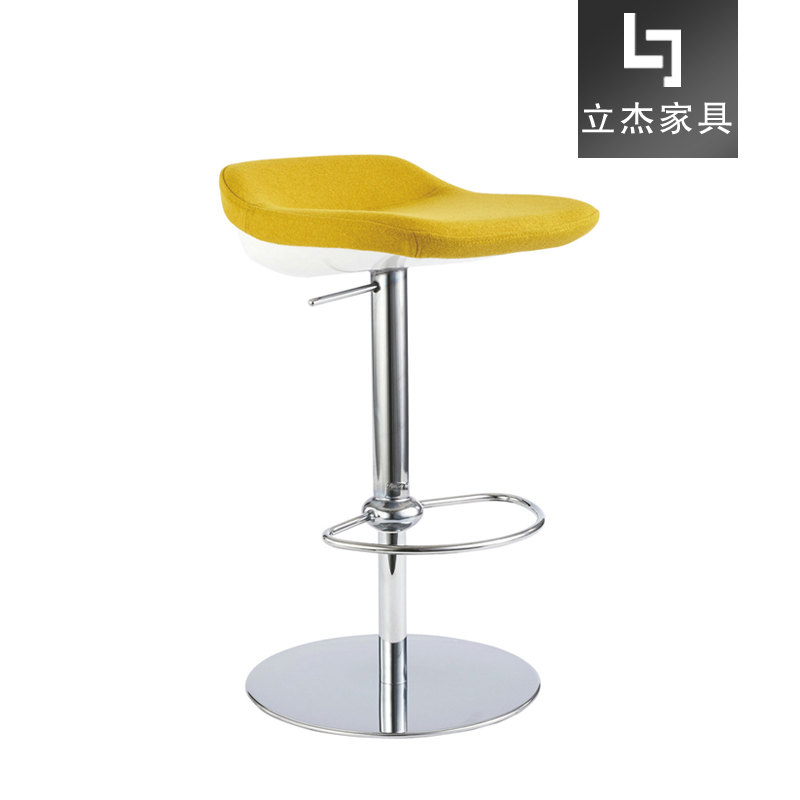 不銹鋼電鍍圓盤腳架,可升降調節,座面飾以優質布面軟包。