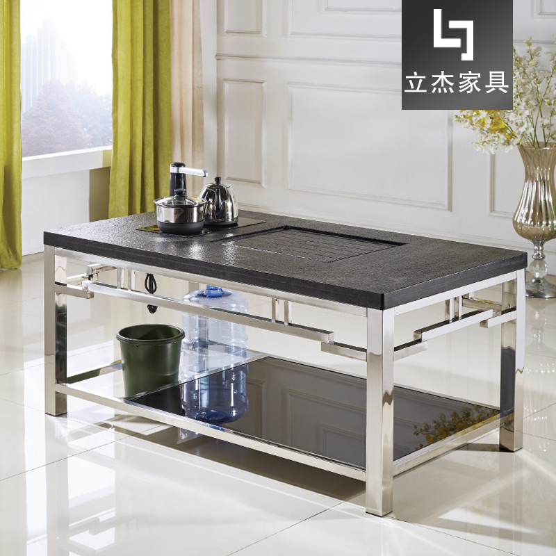 優質不銹鋼茶幾架+火燒石臺面+茶盤