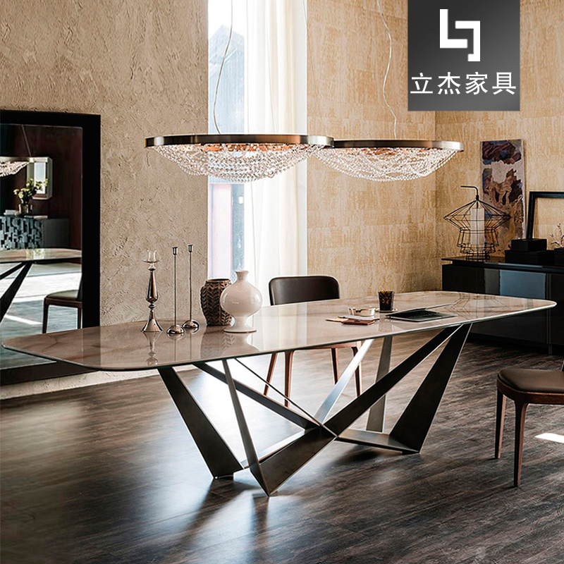 大理石餐桌后現(xiàn)代創(chuàng)意長方形餐桌