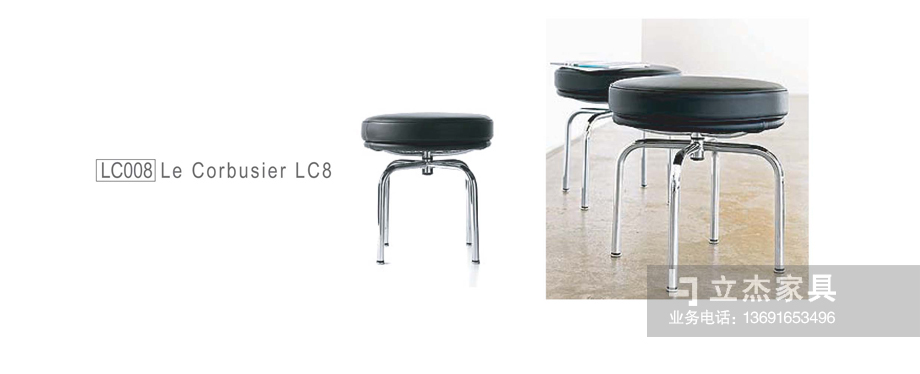 Le Corbusier(勒·柯布西耶), Pierre Jeanneret和 Charlotte Perriand于1928年合作設計,該金屬旋轉皮椅連接椅腳與椅座部分可旋轉的想法在當時非常新奇.