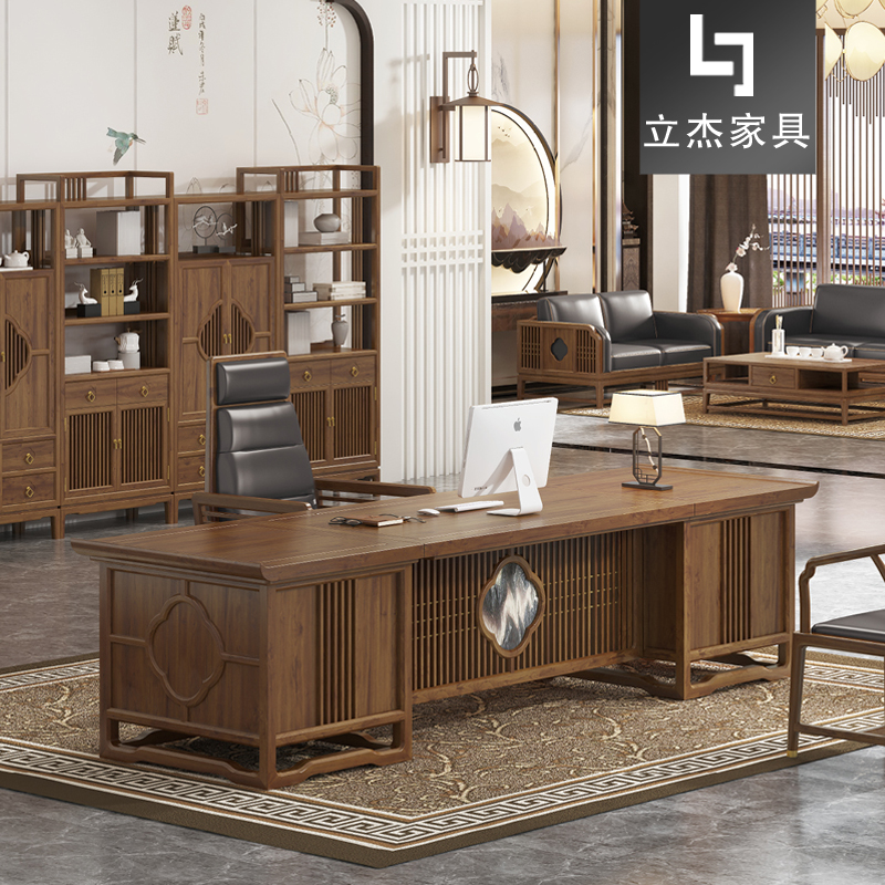 首頁--->行政桌組系列--->新中式班臺--->新中式總裁辦公桌老板桌[NCED-PY01]