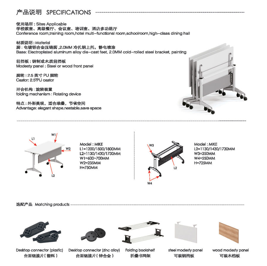 名稱:折疊培訓桌可移動員工長條會議桌 [TD-Mike]