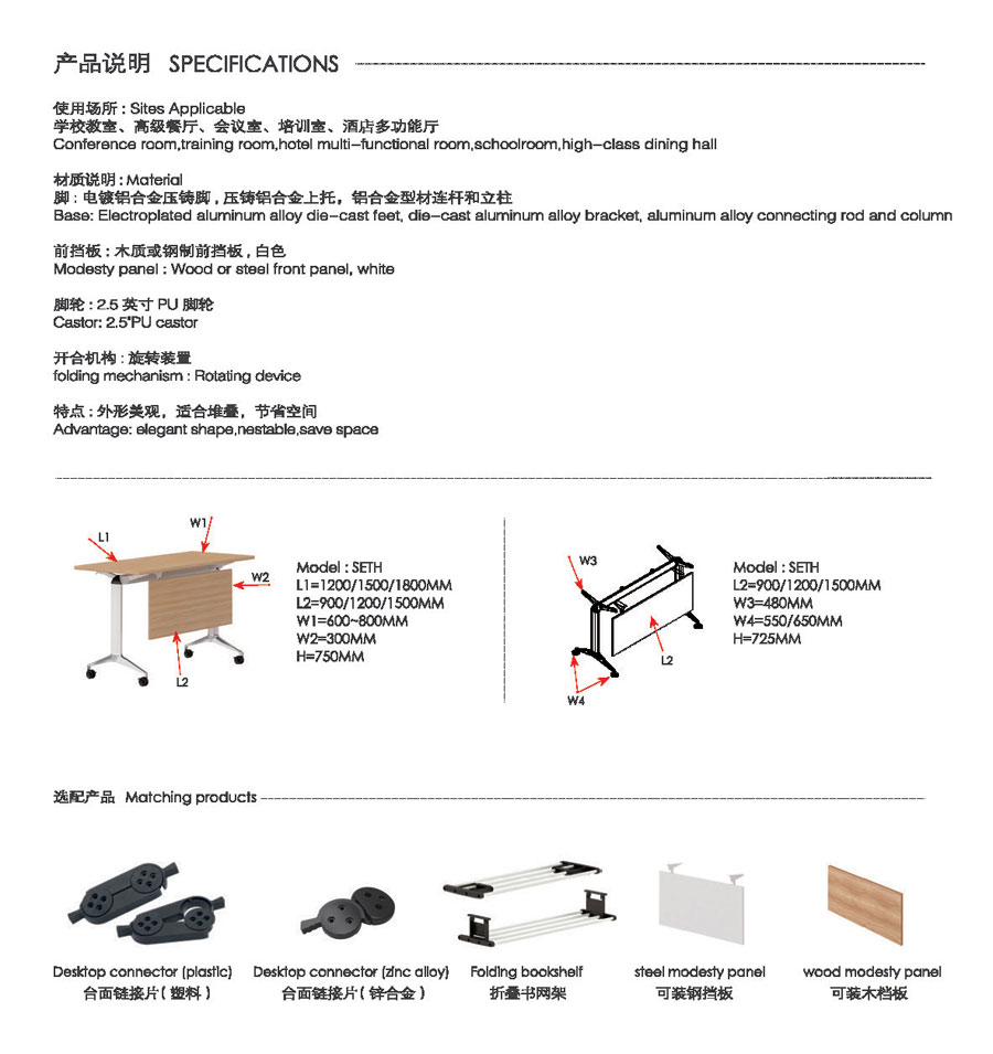 名稱:可折疊多功能會議桌長桌移動課桌 [TD-Seth]