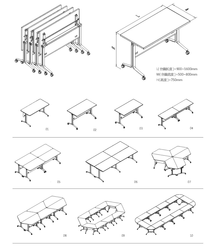 折疊培訓(xùn)桌椅組合長條形桌拼接翻板桌