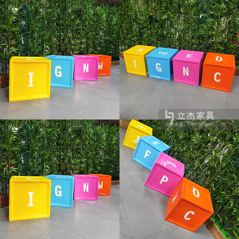 品名:商場玻璃鋼休閑椅子幼兒園卡通座椅兒童區裝飾游樂園創意字母坐凳