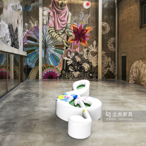 品名:玻璃鋼創(chuàng)意卡通音符座椅雕塑商業(yè)街商場美陳樹脂花盆座椅雕塑擺件